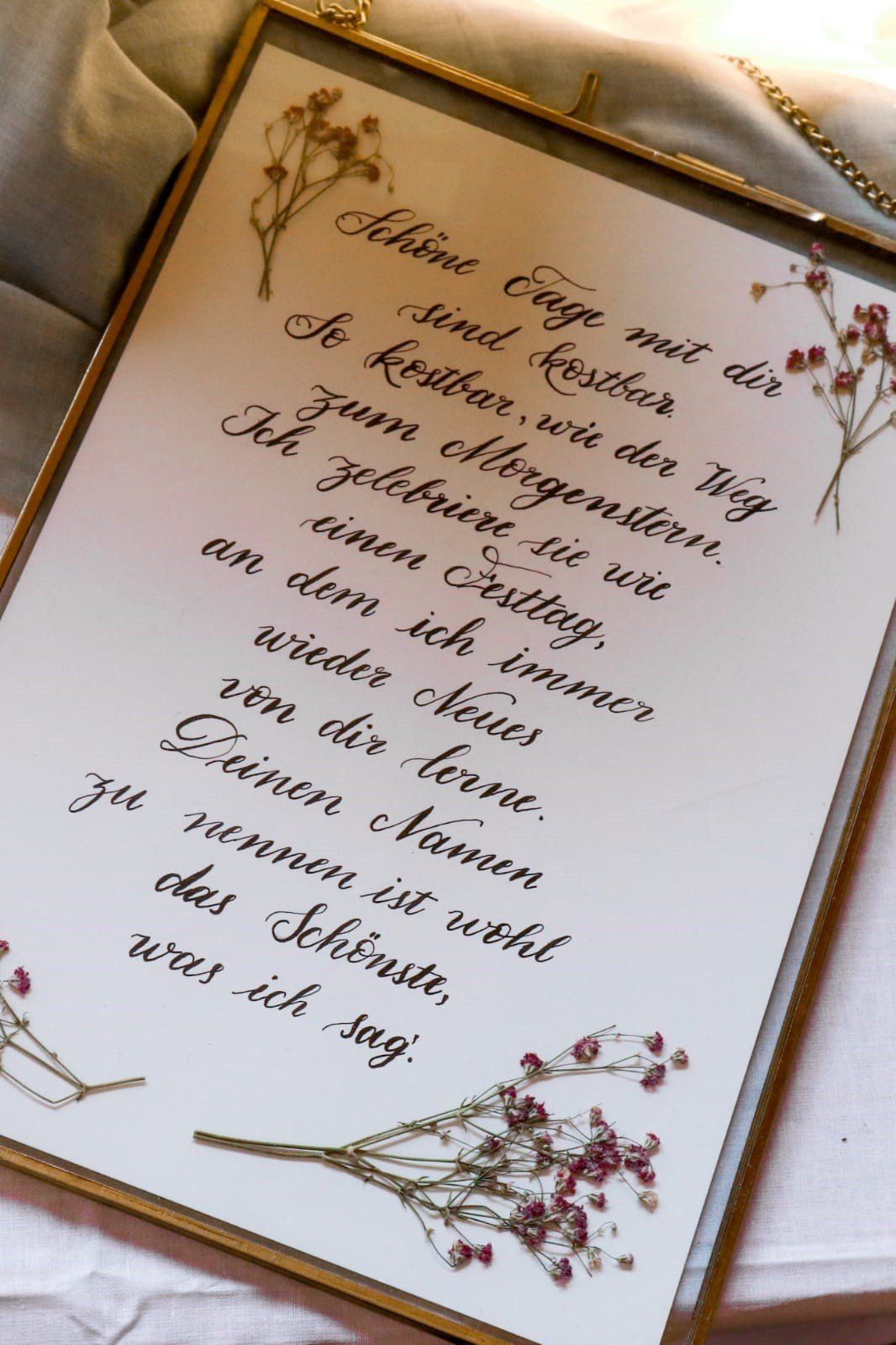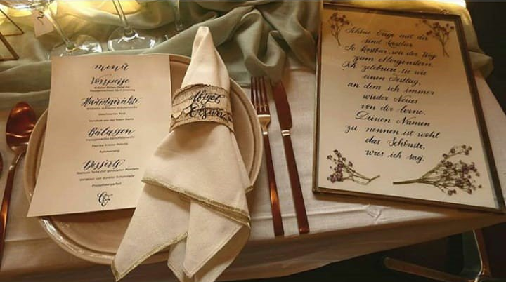 Als ausgebildete Glasveredlerin gestaltet meine Tochter von der "Glasfeder-Kalligraphie" mit handschriftlicher Wedding-Kalligraphie und künstlerischen Glasgravuren unvergessliche Dekoelemente, DIY-Geschenke, Einladungen und vieles mehr.